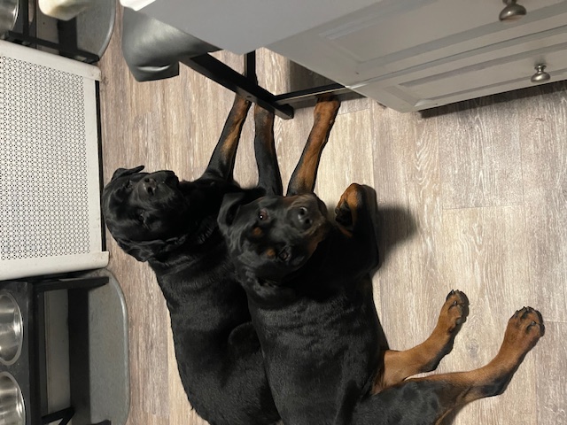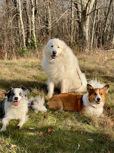 Sean E.'s dogs, [left to right] Blueberry, Orzo, and Pancake